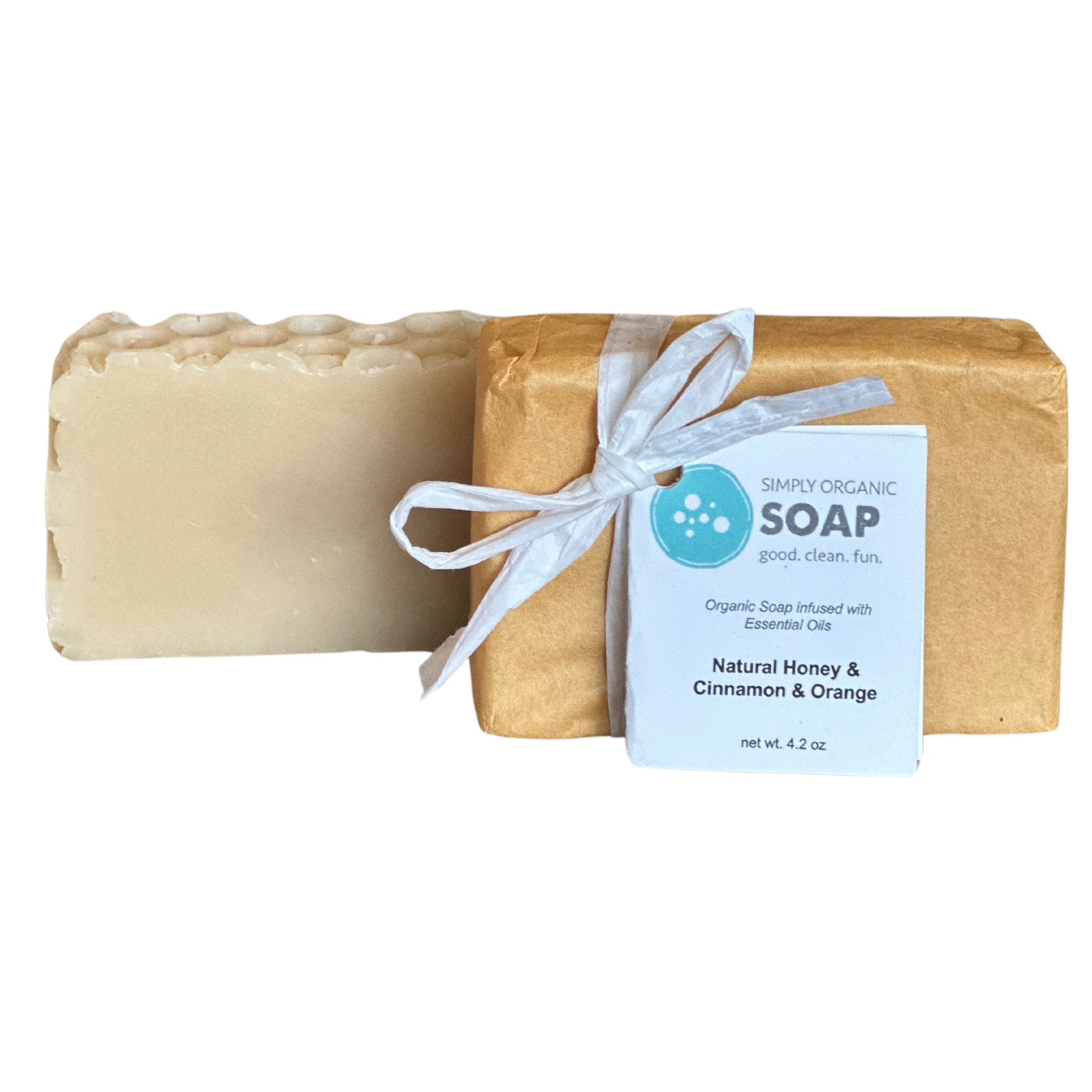 Hydrate your skin with our handcrafted organic soap infused with cinnamon & clove essential oils and natural honey. Honey improves your skin's elasticity by locking in moisture and leaving you glowing! With the added essential oils, this soap makes your shower or bath smell divine!